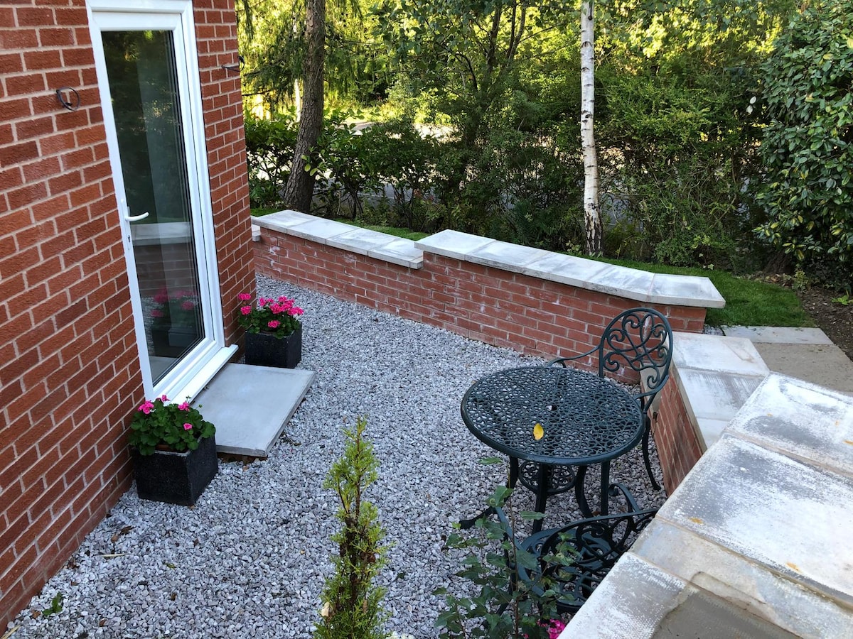 Kick back and relax in this calm, stylish and clean space. Free parking, private entrance, and en suite bathroom. Includes Large 55" TV NETFLIX & PRIME dedicated work/dining space. Located close to City Centre/Deangate/Old trafford football and cricket grounds. The famous Trafford centre is only 5 miles away, easily accessible by car or public transport. Closest bus stop 400 ft, tram stop- 0.7 miles. We are 6 miles from Manchester airport, located just off the M56 motorway (Princess Parkway).