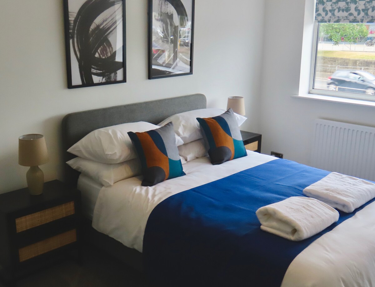 Deluxe 2-bedroom apartment with stunning water views 🌊. Sleeps up to 5 with 2 double beds and a foldable bed available on request. Enjoy a spacious open-plan living area, fully equipped kitchen, 2 modern bathrooms, and a private balcony. Ideal for families, friends, or business stays. Fast Wi-Fi, fresh linens, towels, and all essentials provided for a comfortable and relaxing stay in a prime location. Affordable paid parking 🅿️ for just £6 for 24 hours / £10 for 48 hours.