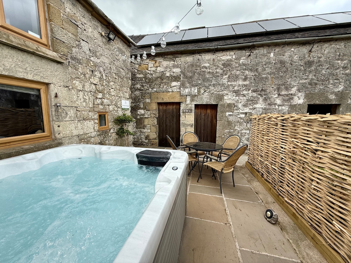 Beautifully converted barn (sleeps 6) + annex (extra 2ppl) in a quiet gated farm hamlet of properties in the Saddleworth countryside with stunning views ✶ Enjoy your own wood fired hot tub, fire pit, private woodland & lake ✶ Friendly farm animals, pygmy goats & space for kids to play♡ Log burners, boards games, modern kitchen, stylish cabin. Perfect for families & friends. Excellent access to walks, villages, pubs, M62, Manchester & Leeds. A unique countryside retreat for lasting memories ♡