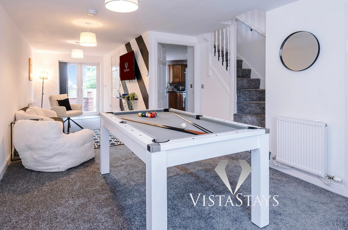 Welcome to our home Cravenwood House™, a serene and stylish three-story townhouse in the heart of Reddish, Stockport. Perfect for families or business travelers, this spacious home features four bedrooms, comfortably accommodating up to seven guests. Enjoy the comfort of a large lounge, a fully equipped kitchen, and a dining area perfect for shared meals. The house includes two en-suite bathrooms, fitted bedroom furniture, and a fantastic games room with a pool table for added entertainment.