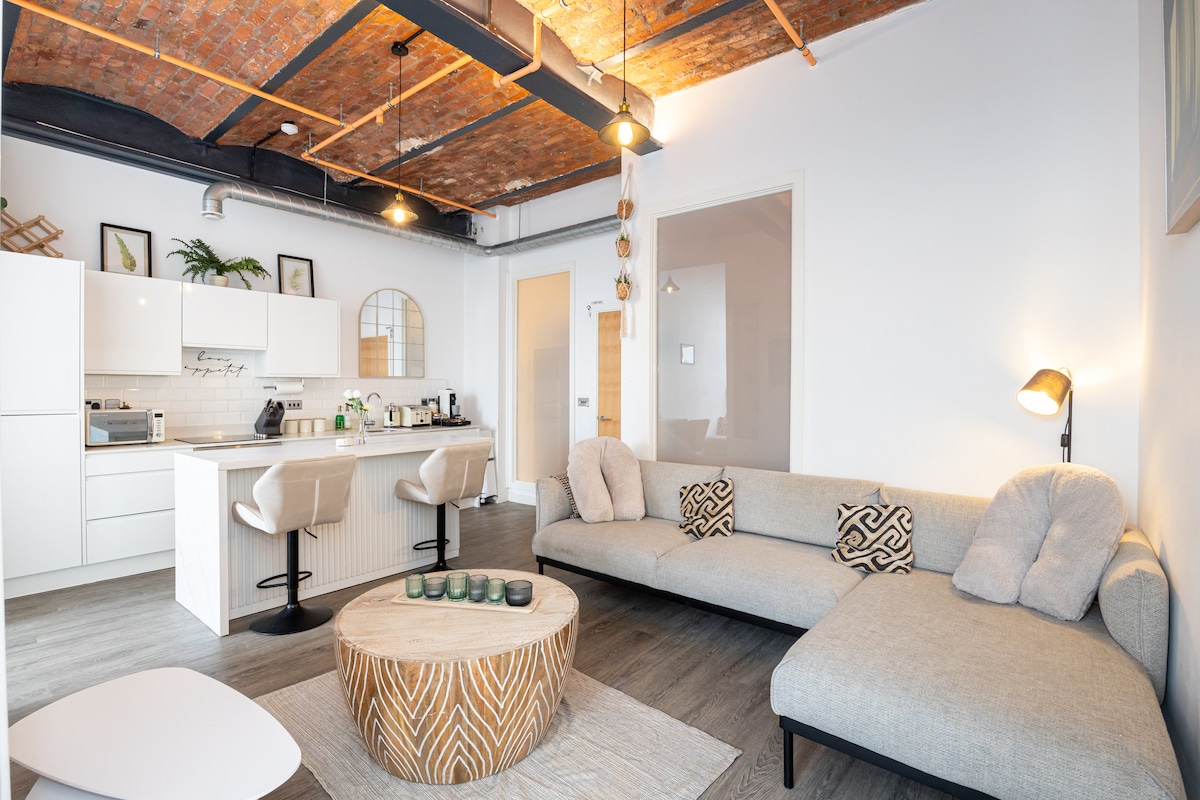 Your boutique city escape in Manchester: a unique converted mill apartment with high ceilings, big windows, and a calm, stylish finish. Great transport links make exploring the city centre, Ancoats, and the Northern Quarter quick and easy. Come home to a private sauna, a jetted bath, and a cosy open-plan space for movie nights. Two bedrooms, two bathrooms, a full kitchen, a workspace, and secure bike storage in the building — ideal for couples, professionals, or weekend city breaks.