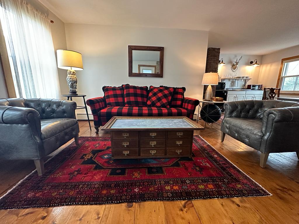 Keep it simple at our peaceful and centrally-located hideaway. This rustic and cozy two-story barn guesthouse with fireplace is located on four acres of a 1768 historic homestead right in Manchester Center. Enjoy the pond and mountain views from the bedroom and living room windows; the guesthouse faces a peaceful meadow and wildlife pond which abuts 70 acres of preserved land with hiking trails, yet it's also just steps from Main Street and all of the dining and shopping of Manchester Village.
