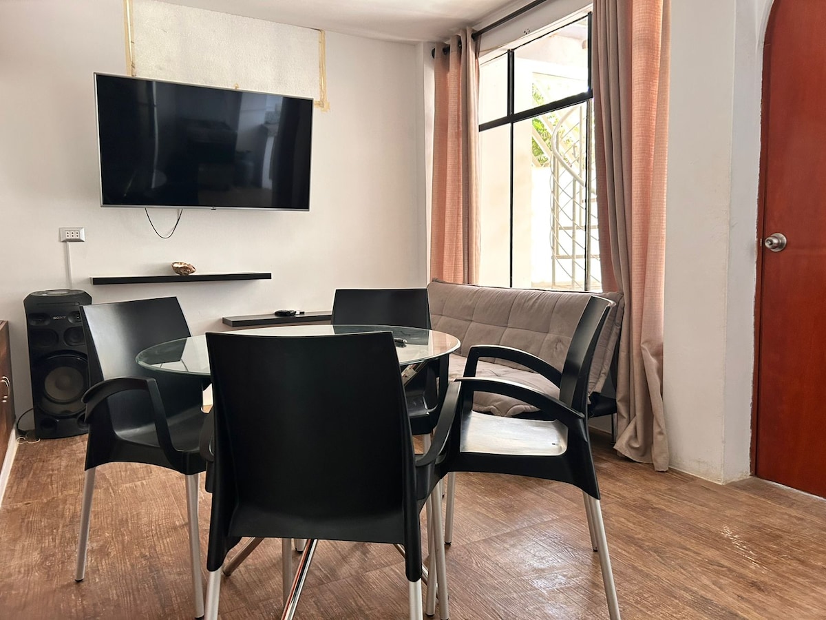 Relájate en este espacio acogedor y elegante, ven y disfruta de nuestras playas y su cálido clima en el norte del Perú. Degusta de la mejor comida marina cerca al mar. Ideal para parejas, viajeros solos o nómadas digitales: cuenta con escritorio de trabajo, buena iluminación natural y todo lo necesario para una estadía cálida y acogedora. A pocos minutos de la playa, restaurantes y vida local. ¡Relájate, trabaja o simplemente desconéctate con estilo!