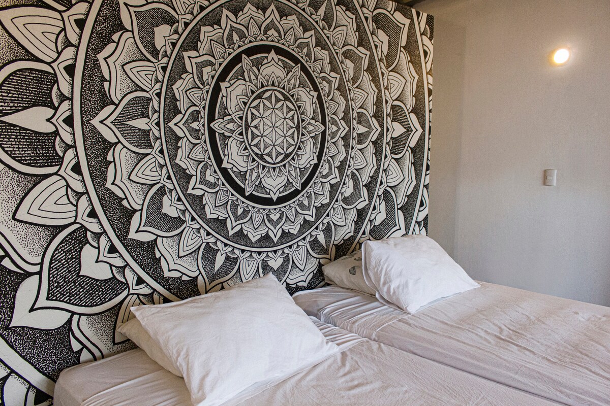 El Patio, minimalistic and independent loft, industrial concept placed in second row and direct access to the beach in front the property. Ideal for one person or a couple traveling to Mancora looking for a bright, affordable place close to hotels and restaurants in Pocitas Beach. Spacious area for bedroom, a chiiling place and basic cooking. Book El Patio & El Estudio Lofts together, one infront the other, up to 5 person. Have a special need or question just send me a message!