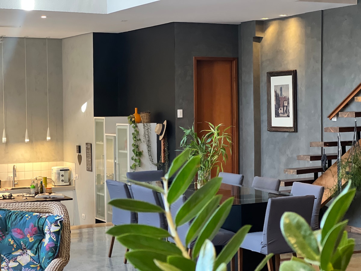 Com muito amor, abrimos as portas do nosso lar para você enquanto estamos viajando. 🏡 Essa não é só uma casa. É um refúgio onde o design encontra o aconchego e cria experiências que ficam na memória. Aqui, o pé-direito alto deixa a luz natural invadir os ambientes, o design moderno conversa com a natureza e cada detalhe foi pensado pra fazer você sentir: “era exatamente isso que eu precisava”.