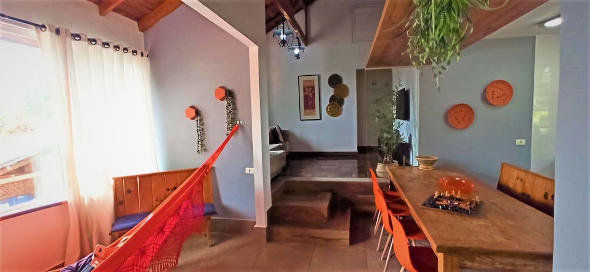 Casa completa com piscina, perfeita para receber famílias e grupos de amigos que desejam viver momentos especiais com conforto, privacidade e lazer. A área externa convida para relaxar, aproveitar a piscina e compartilhar bons momentos, seja em um fim de semana especial ou dias de descanso. Ideal para quem busca reunir pessoas queridas em um ambiente acolhedor e exclusivo. "Para reservas com 4 ou mais hospedes, oferecemos um mimo de boas-vindas."
