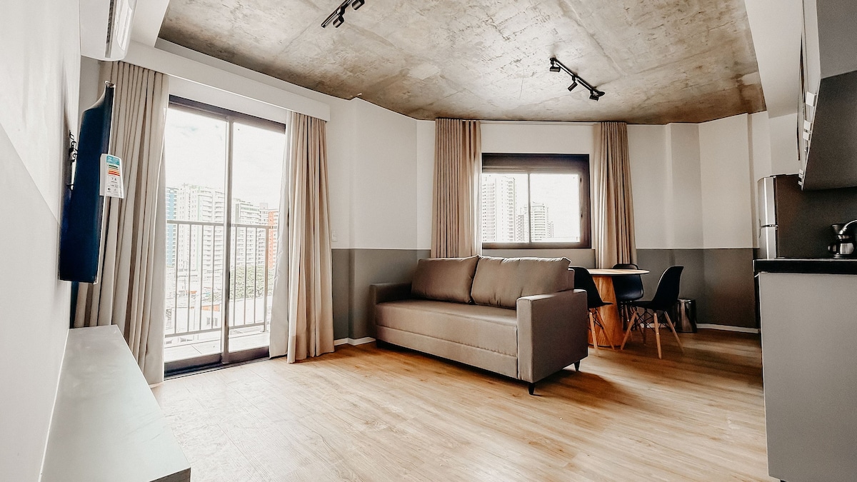 Studio localizado na área central de Maringá, a pouco metros da Catedral e próximo também de grandes hipermercados, e ao grande centro gastronômico de Maringá, o mercadão municipal, Estádio Willie Davids. Apartamento studio, ambiente integrado, confortável, com ar condicionado, netflix, wifi e cozinha completa, maquina de lavar roupas. Garagem no subsolo. Acesso do Hóspede: Piscina aquecida Sauna Coworking Espaço para reuniões Lavanderia coletiva Coliving Pet Friendly Espaço Fitnes.