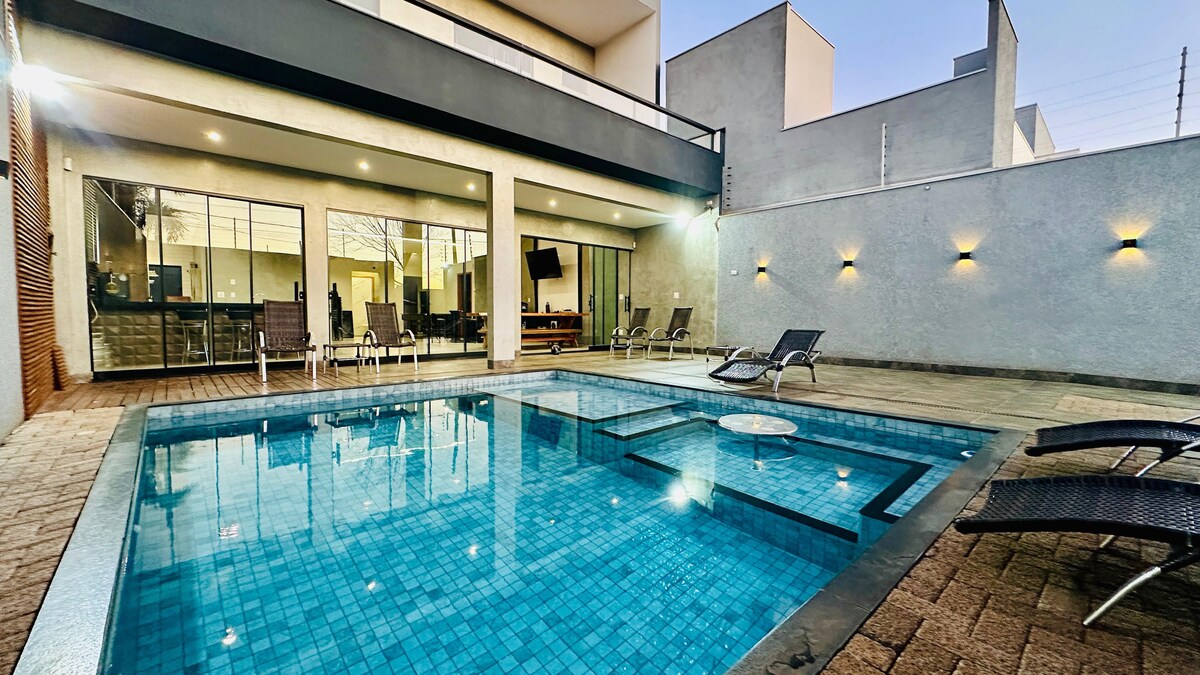 Esta Belíssima Casa é perfeita para viagens em grupo. Local apropriado para estadia e aproveitar essa piscina maravilhosa e área Gourmet ampla e climatizada. Churrasqueira a carvão, bancada de mármore com banquetas, uma linda mesa de Madeira. Cozinha completa. • 3 Suítes • 1 quarto • Sala de TV • Área de jantar climatizada • Utensílios de cozinha • 6 Banquetas • Piscina • 3 Espreguiçadeira • 4 Cadeiras de área • Mesas plástica disponível • Escadas com corrimão para acessar as Suítes.