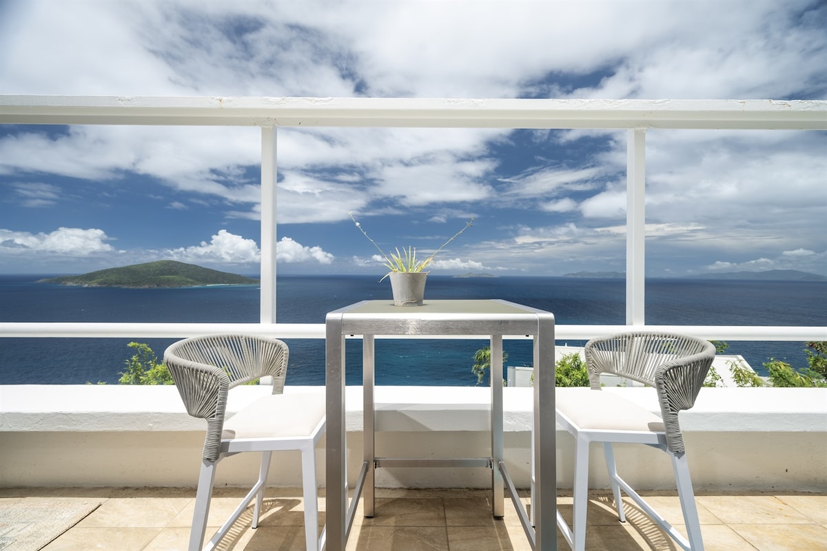 *NO CLEANING FEE* Located on the cool Northside of St. Thomas, our home looks out over a large flat-ish yard & a panoramic view of Magen's Bay, the Atlantic Ocean, and 20 small islands. Your unit has a private entrance 5 steps down from your dedicated parking space. Note: 1. There is no smoking allowed on the deck or in the apartment. 2. Unlike many Airbnbs we do NOT charge a cleaning fee so we ask our guests to sweep and wash their dishes before leaving. 3. No more than 4 guests at ANY time.