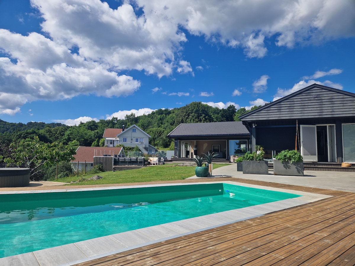 平均评分 5 分(满分 5 分),共 3 条评价挪威南部的家庭天堂,带泳池,靠近大海