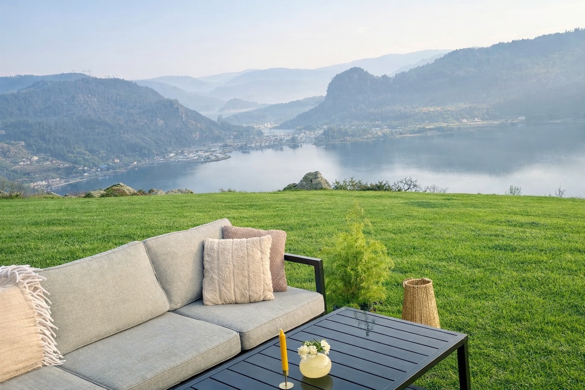 挪威法尔松的现代房源,拥有迷人的海景