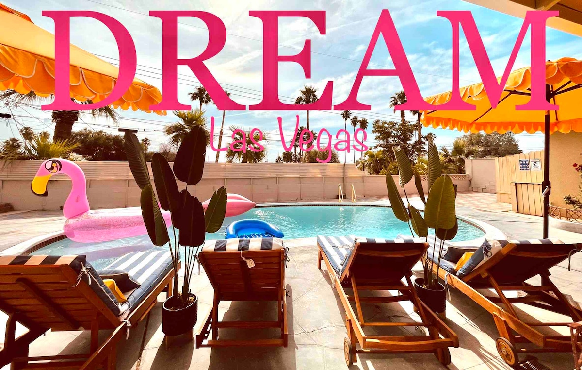 RARE on the market! This absolutely Stunning, fully remodeled licensed Artsy home with a POOL, BUSINESS CENTER, CHEF KITCHEN is in the heart of historic DOWNTOWN-just 5 min drive to Las Vegas Strip, 10 min to Convention Center and 3 min to Fremont Experience. Nestled in a peaceful neighborhood this exquisite retreat is ideal for guests seeking luxury, comfort, and fun all in one place. Thoughtfully designed and beautifully equipped, this home meets all your family, business, and leisure needs.