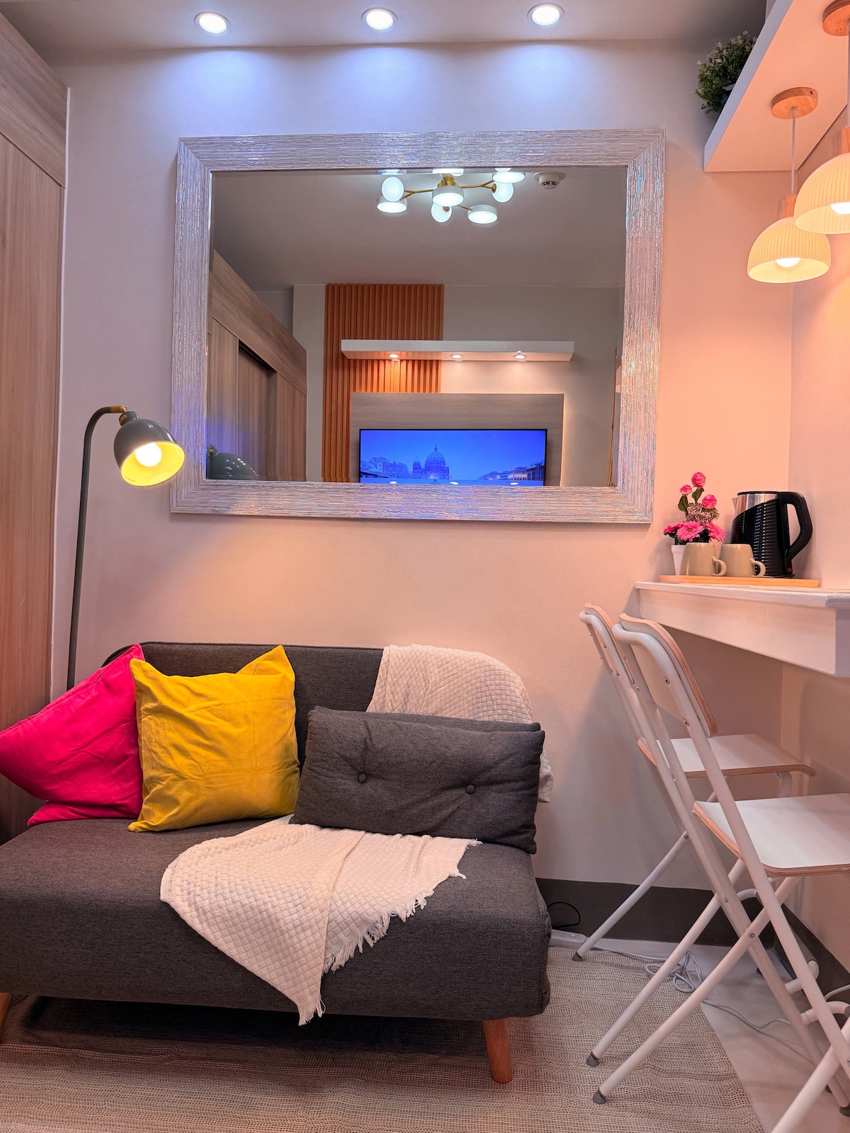 Comfy and Spacious Staycation in Greenfield District Mandaluyong Across Shangrila Mall Enjoy a cozy, stylish condo close to top attractions, dining, and transit. Perfect for solo travelers or couples, with a comfy bed, sofa bed, 3 seater sofa , full kitchen, and high-speed Wi-Fi. Explore the city and relax in a welcoming space—budget-friendly without compromising on comfort! The condo is right across ShangriLa Mall in Mandaluyong where everything is walking distance and convenient.