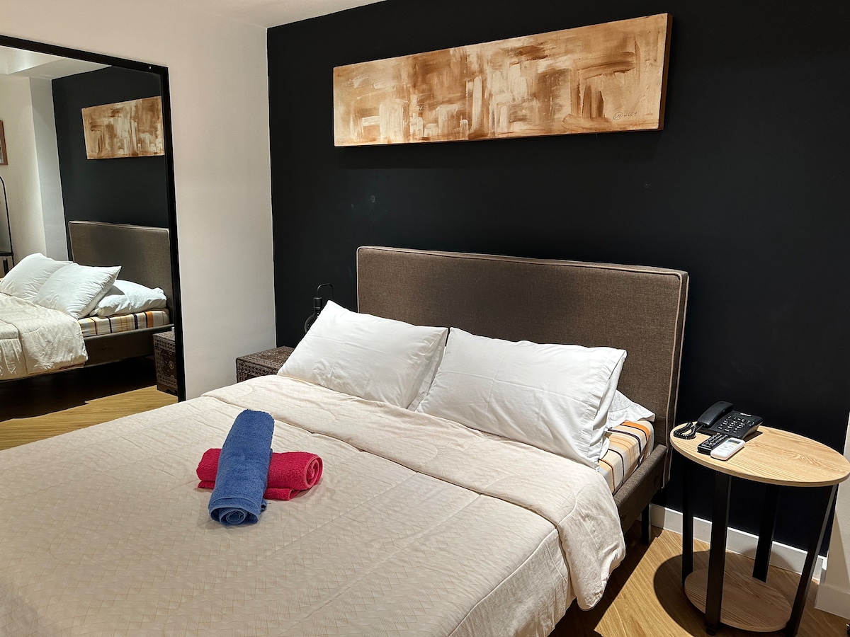 A rare 60sqm corner suite with a freestanding soaking bathtub and two private balconies overlooking the skyline. Designed for slow evenings, natural light, and comfortable longer stays in the heart of Greenhills. Tucked along Wilson Street in San Juan, you’re minutes from Greenhills Shopping Center, Ortigas, and Mandaluyong — while enjoying the privacy of a quiet residential address.