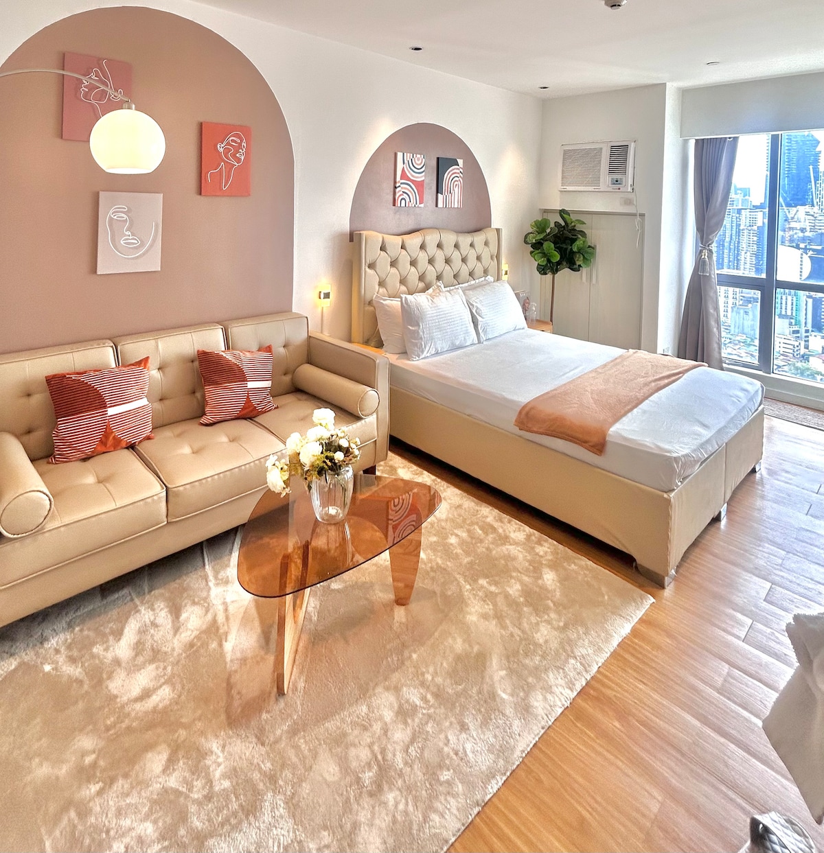 Welcome to our airy contemporary and Mediterranean-inspired Tahanan, a 25 sqm studio unit in Mandaluyong, just a short walk from Rockwell and Powerplant Mall! We’ve designed our space to provide a comfortable stay while capturing stunning sunset views, as well as views of Mandaluyong and Makati from our balcony. Whether you’re visiting for work, leisure, or a mix of both, our well-equipped Airbnb is the perfect base for exploring the vibrant cities of Mandaluyong and Makati.
