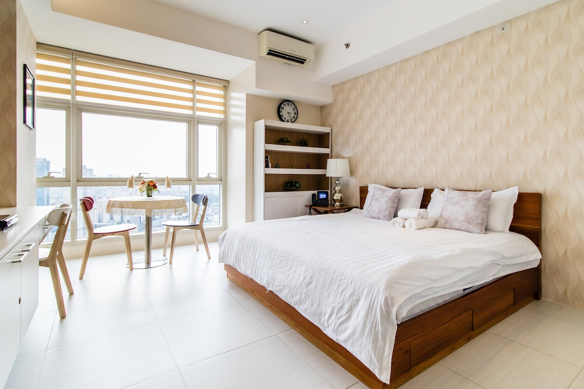 Welcome to our airy contemporary and Mediterranean-inspired Tahanan, a 25 sqm studio unit in Mandaluyong, just a short walk from Rockwell and Powerplant Mall! We’ve designed our space to provide a comfortable stay while capturing stunning sunset views, as well as views of Mandaluyong and Makati from our balcony. Whether you’re visiting for work, leisure, or a mix of both, our well-equipped Airbnb is the perfect base for exploring the vibrant cities of Mandaluyong and Makati.