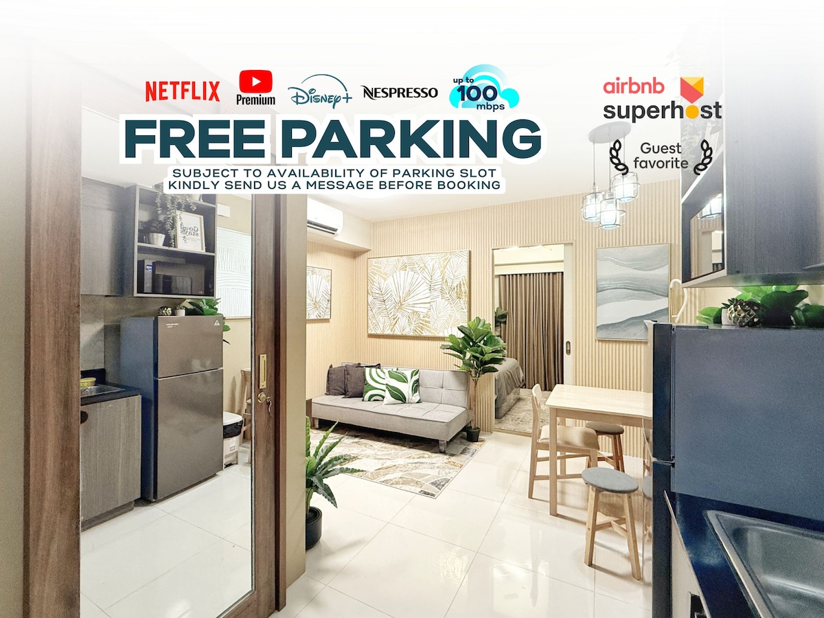 Welcome to Albert and Joyce Stays Enjoy a relaxing stay in this boho-inspired home, thoughtfully designed for your comfort and entertainment. You'll feel right at home! Conveniently located at Fame Residences along EDSA, you'll enjoy easy access to shopping, dining, entertainment, and transportation—everything you need is just minutes away, ensuring a seamless and enjoyable stay.