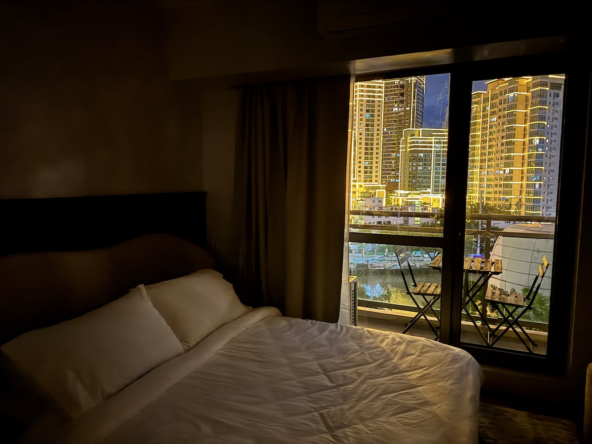 Stay in our Instragrammabble chic 28 sqm condo on the 39th floor, offering breathtaking city views . This stylish space features modern décor, a comfortable bed, a fully equipped kitchen, and a 60" smart TV with Netflix and YouTube premium. Enjoy the vibrant ambiance and capture beautiful moments from the high vantage point. Ideal for both short and long stays. Book now for an unforgettable experience!