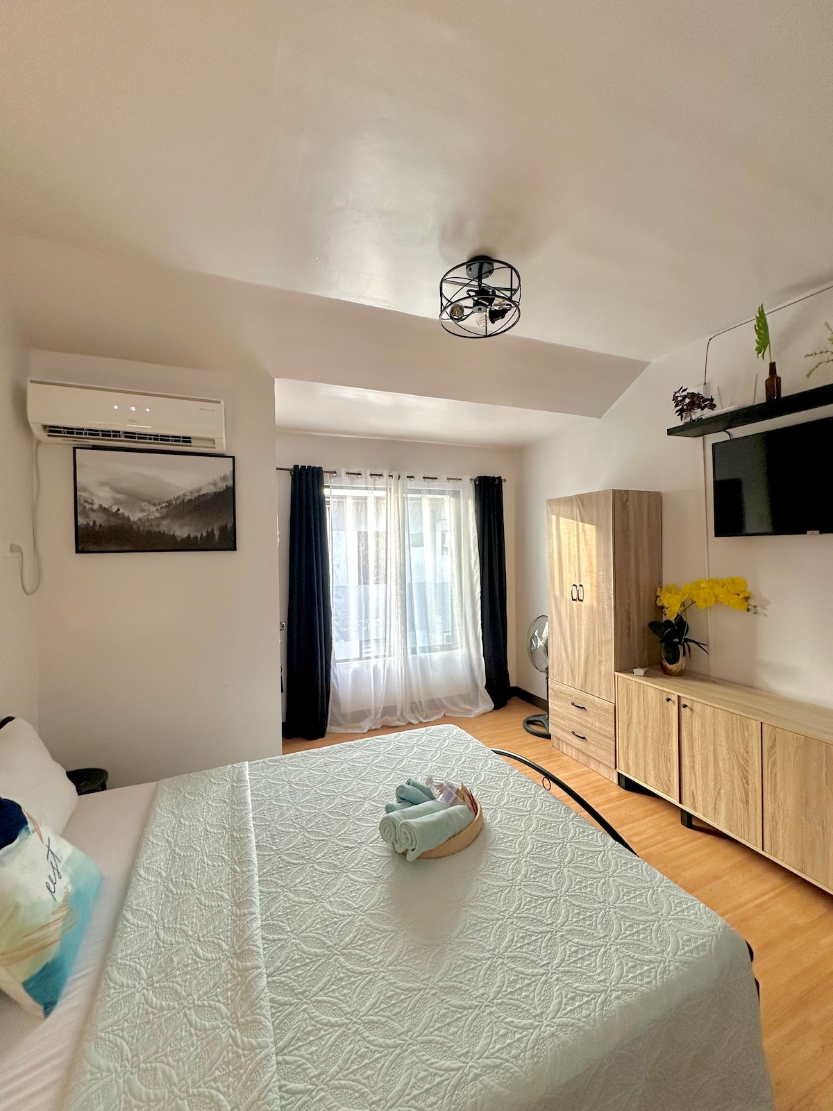 Welcome to your home away from home! Perfect for solo travelers or couples! Enjoy a comfy bed with extra sofa bed, Converg Fiber Wi-Fi, smart TV with Netflix, balcony and a kitchenette. The space is bright, modern, new and has everything you need, designed for relaxation and convenience. Located in a safe, central area close to cafes, malls, and 20min drive to airport. What makes it special? It’s a cozy urban retreat that feels like home while keeping you close to the city buzz!