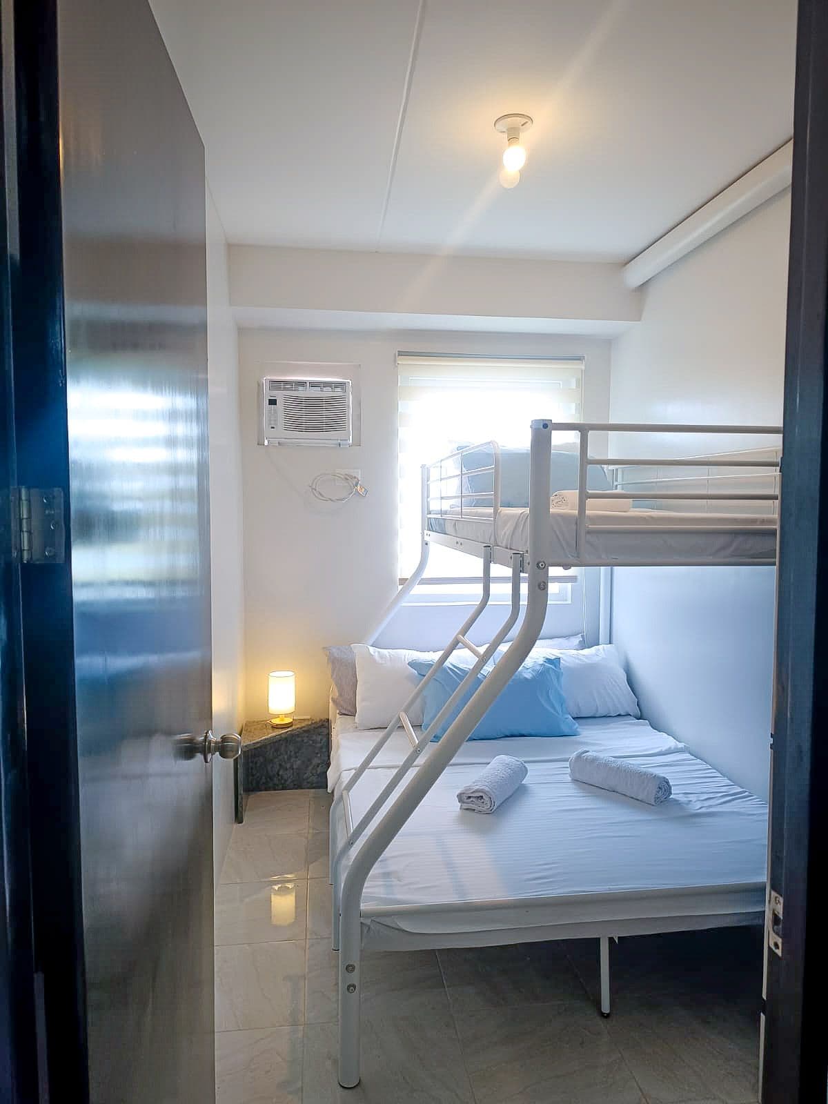 📍Midpoint Residences, Banilad, Mandaue City 2 adults, 1 child - Double Bed (Good for Two) - Built In Cabinet - Sofa Bed (Good for One) - Induction Stove - Smart TV with Netflix, Disney Plus and etc. - WIFI - Kitchen and Dining Utensils - Board Games - Ironing Board and Iron - Hair Blower - High Table Overlooking the City Condo Amenities include: -Gym - BBQ Pit - Half Basketball Court - FREE Swimming Pool - Roof Deck Lounge Free Parking good for 3 hours only. Free Parking for motorcycle
