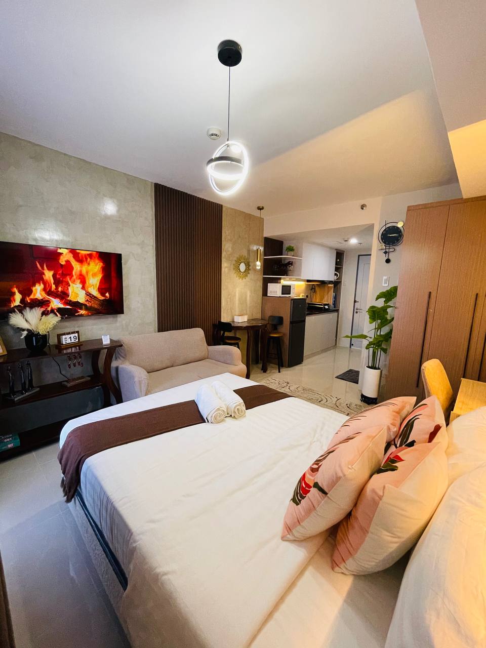 Welcome to Shwe Suite, nestled in the heart of Mandaue City. We are at J Tower Residences that offers the perfect mix of urban convenience and family-friendly living. It is few steps away from SM Jmall which offers variety of restaurants, shops, salons and many more. The suite comes with a 45 inch Smart TV that is connected to a 100 MBPs internet ideal for those who are working at home. Also, it has a full kitchen and shower. Our vision is to have a hotel like experience at the lowest price.