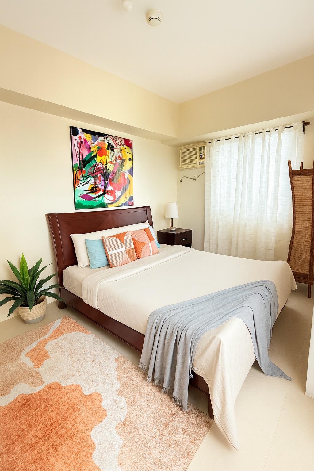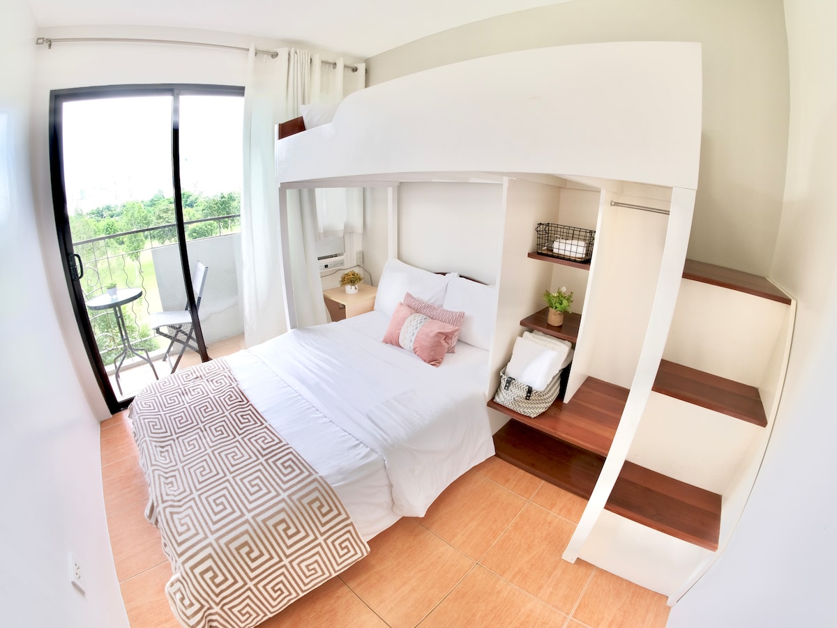 Welcome to your home away from home! Perfect for solo travelers or couples! Enjoy a comfy bed with extra sofa bed, Converg Fiber Wi-Fi, smart TV with Netflix, balcony and a kitchenette. The space is bright, modern, new and has everything you need, designed for relaxation and convenience. Located in a safe, central area close to cafes, malls, and 20min drive to airport. What makes it special? It’s a cozy urban retreat that feels like home while keeping you close to the city buzz!