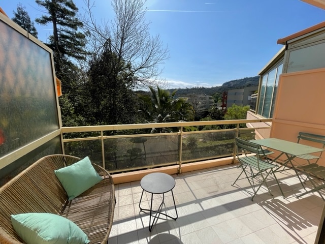 Appartement classé 4 étoile en rez-de jardin, vue incroyable sur les collines et la mer. Résidence très calme, sécurisée par un portail et avec piscine. Terrasse et jardin privatifs permettant de se détendre et de déjeuner en regardant la mer. Mobilier choisi avec soin pour que vous vous sentiez comme chez vous. Literies de grande qualité. Draps et linge de toilette fournis. Matériel bébé fourni. Location de serviettes de piscine/plage possible (3,50€/serviette)