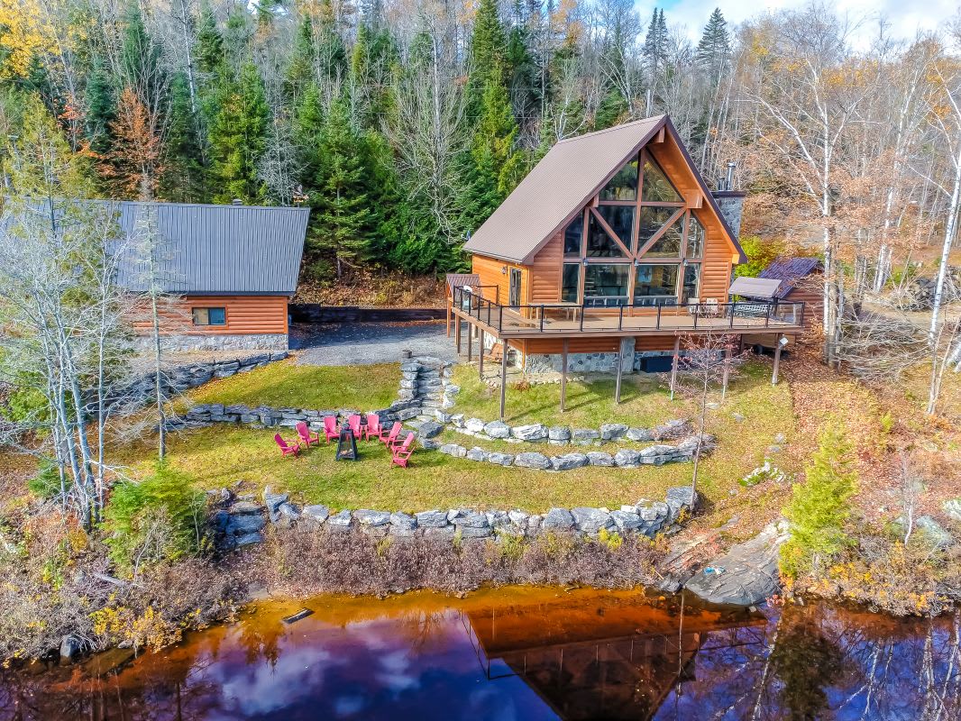 Escape to a new luxury waterfront chalet on the L’Assomption River. This 3,200 sq ft home offers stunning mountain views, an 8-person hot tub, and game room. Comfortably sleeping 9 guests, it's the perfect intimate retreat just 1 hour from Montreal and minutes from skiing. Enjoy superior quality, handcrafted details, and direct river access for an unforgettable stay.