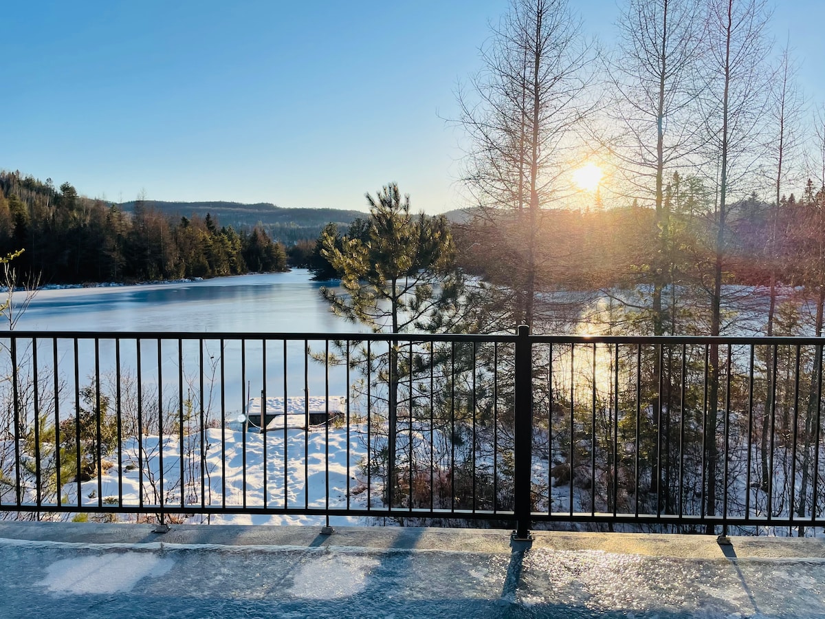 Venez décrocher de la ville dans ce magnifique chalet perché sur un lac sans bateau à moteur dans un espace très boisé et privé. Une vue incroyable et de majestueux balcons. Le chalet comporte trois chambres fermées. Pour baignade, spa , paddle board, canot, kayak, randonnée, ski de fond, ski alpin, raquettes, VTT, motoneiges, ou y travailler à distance!