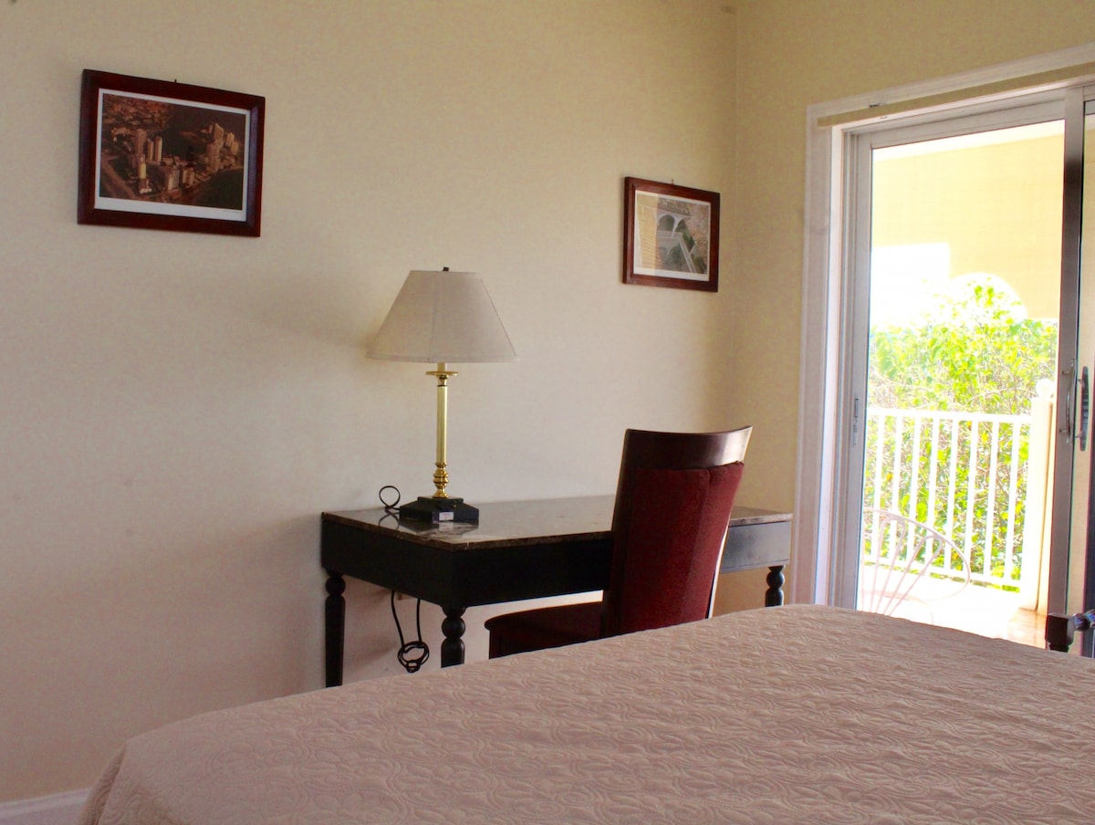 Plan your escape from the hustle and bustle of your daily routine to the cool hills of Mandeville, Jamaica. Come for the silence! or the sound of tropical birds. Feel the wind as it rushes through the trees, and enjoy the vibrant colours of bougainvilleas and the magnificent yellows of the poui tree when in bloom. On the inside, enjoy the amenities of modern living in our spacious master suite, with en-suite bathroom for couples. Free WiFi is available for you to stay connected.