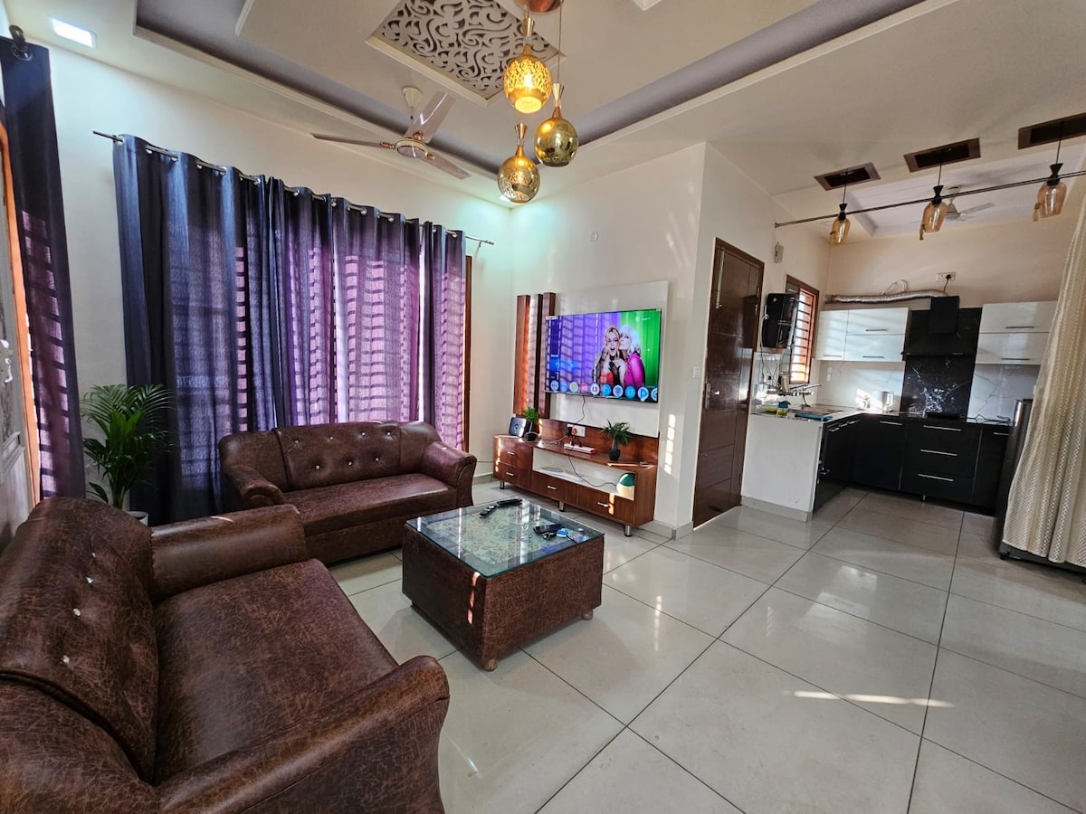 Cozy studio in JTPL, Sector 115, Mohali—perfect for families, couples (married only) or travelers. Spacious, with Wi‑Fi, TV, kitchen, and workspace in a safe, prime location. Car on rental basis will be provided subject to availability. Book now! Caution Note:- Not suitable for unmarried couples. If the booking is made for a group of boys/male guests, a maximum of two guests will be permitted.. Please read the guest access before booking to avoid inconvenience.