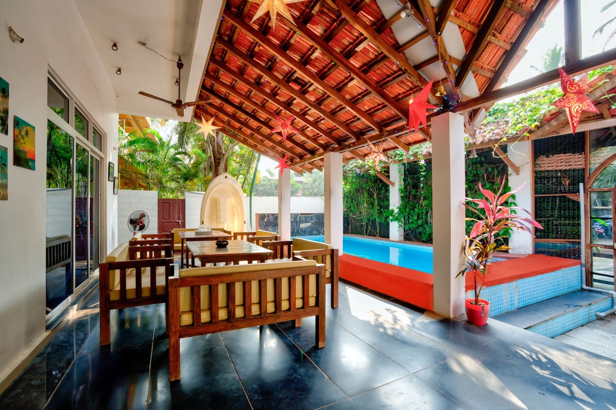 U.S.P. of the villa is LOCATION, LOCATION, AND LOCATION. 1) A) Sleeperwood theme bedroom B) Bamboo theme C) Teakwood theme 2) 3 bedrooms with AC & King/ queen bed. 3) Airconditioned Living Room. 4) PRIVATE GATE to the BEACH. 5) Facilitate work remotely. Ideal for workation with unintrupted high speed internet Upto 100 mbps. ( even if there is a power cut) 6) CAR PARKING ( free ) 7) SWIMMING POOL shared 8) Power backup in the form of Inverter.