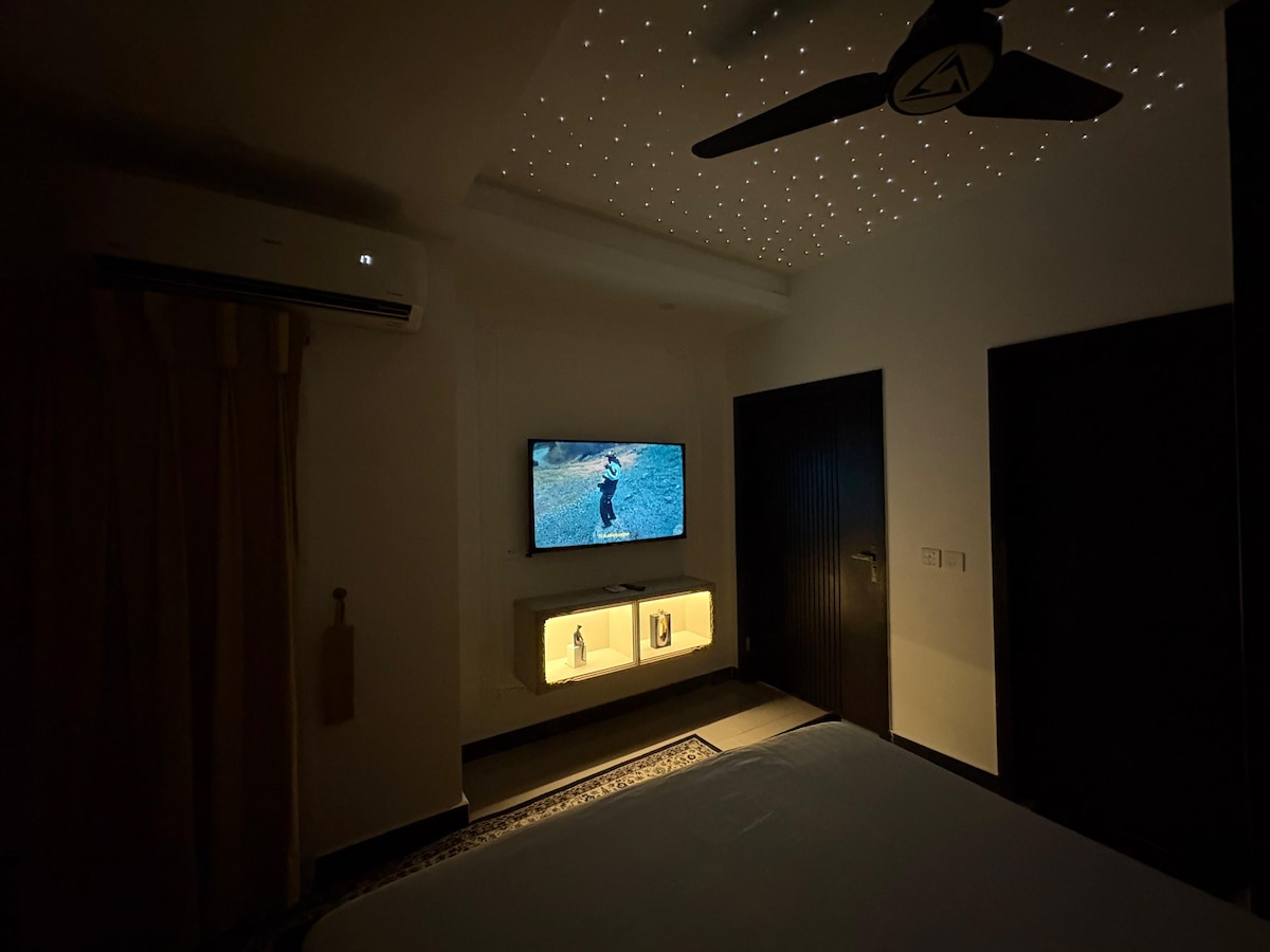 平均评分 4.91 分(满分 5 分),共 11 条评价4.91 (11)Starryroof 1卧室+ Netflix带65英寸8K电视、空调