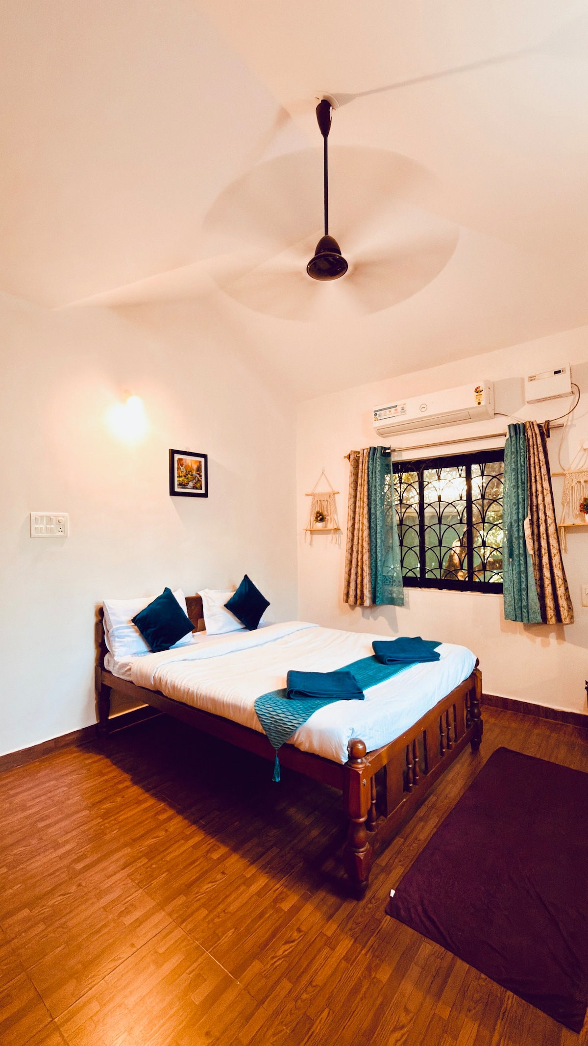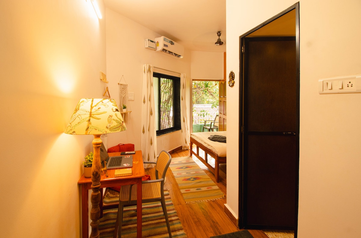 🌞The YelloMello House: where Sun & Beach meet serenity. This cozy, pet-friendly 1BHK offers an AC bedroom, a comfy living den, high-speed Wi-Fi with mini UPS backup, & a fully equipped kitchen in Upper Mandrem Village, North Goa, just 3 km from the beach. Wake up to birdsongs & sunshine, read our books📚, head to the sea 🏖️ for golden hour reflections, cook 🍳or enjoy live gigs & cafés. For creation or simply pausing, we invite you to unwind at your own pace. No power backup for the house.🏡
