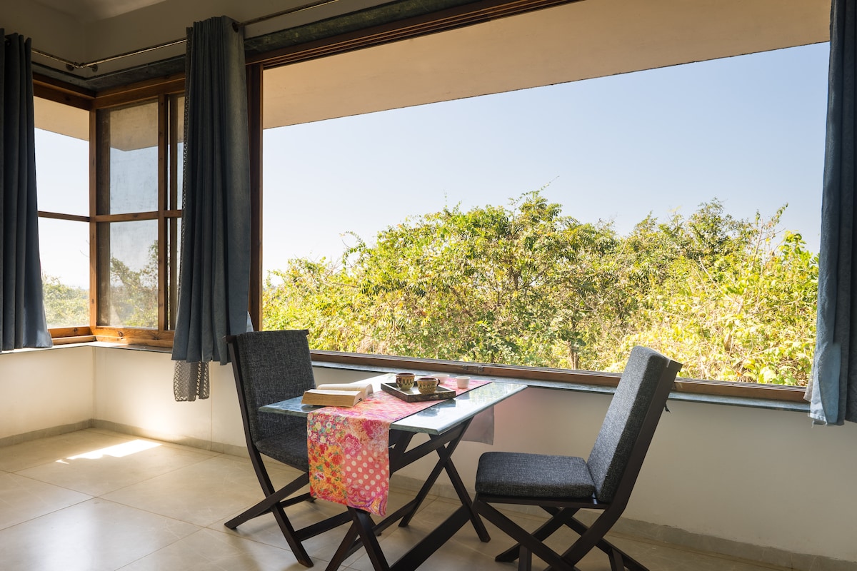 Discover a world of peace & inspiration at The Pause Project, a cozy romantic Airbnb nestled in the middle of a lush forest in Siolim, North Goa. Perfect for solo travelers, couples & families, it offers a space to slow down. Immerse yourself in books, music, travel memories & a lived-in ambience that feels like home. Cook a meal in the kitchenette or explore Siolim, known for its cafes & bars, with Anjuna, Vagator, Assagao & Morjim, Mandrem beaches 15-20 min away & 35 min from MOPA airport.