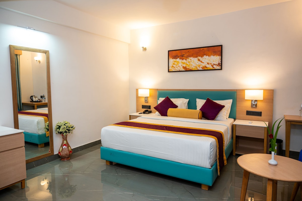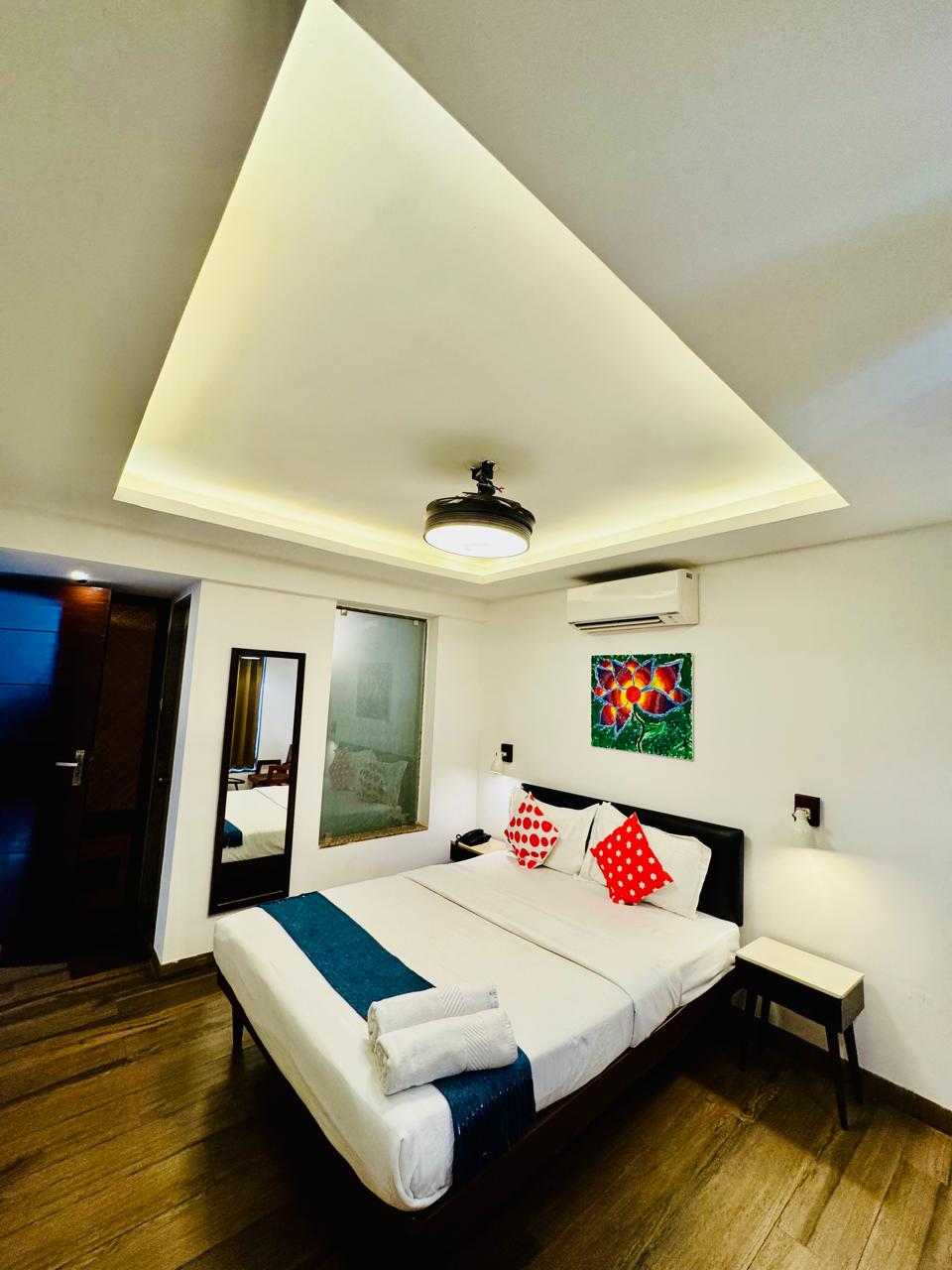 Welcome to this luxury studio for 4 with pool in our boutique hotel that combines style with simplicity to give you that ‘at home’ feeling you crave. With a cozy room and large comfy bed you’d love to sink into, delicious food and visual delights everywhere, This studio promises to capture not only your eyes but your heart. Located in the heart of North Goa 5 mins from Mall De Goa all other hot spots including beaches, party spots, historic places etc are at a distance of approx 5-15 kms.