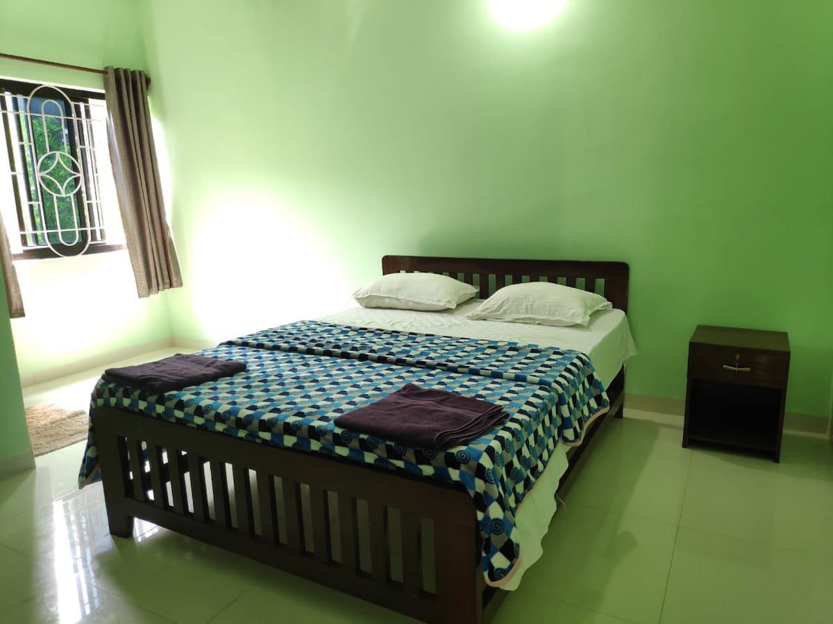 Sanitizing is important to us. We will not mingle with guests.Private gated green property with flowering and fruit bearing plants/ tree's as well as two lawn's and a sit out. Close to the main road yet far away from the bustling noise, restaurants and shops all within walking distance.A 5 minutes walk to the beach. Come relax.!The room is sanitized after every guest checks out,as per Airbnb norms. You are responsible for room house keeping,keep the room clean.Details of listing please read.