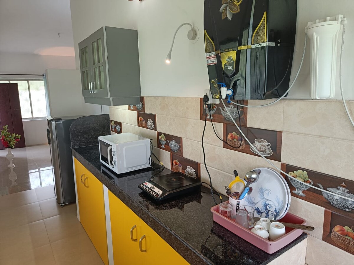 This unique 1 bhk is located in Vagator has a style of its own. It has a lovely patio outside with a plunge pool, Private parking. This Lovely place consists of a spacious Bedroom attached royale toilet with a Tv, Air condition. A vibrant sitting hall with ample light with a Comfortable sofa which can be used as a sofa cum bed too. A kitchen with basic amenities with a refrigerator, water kettle, induction, microwave and cutlery. We have a chef on call. Message the contact host button.