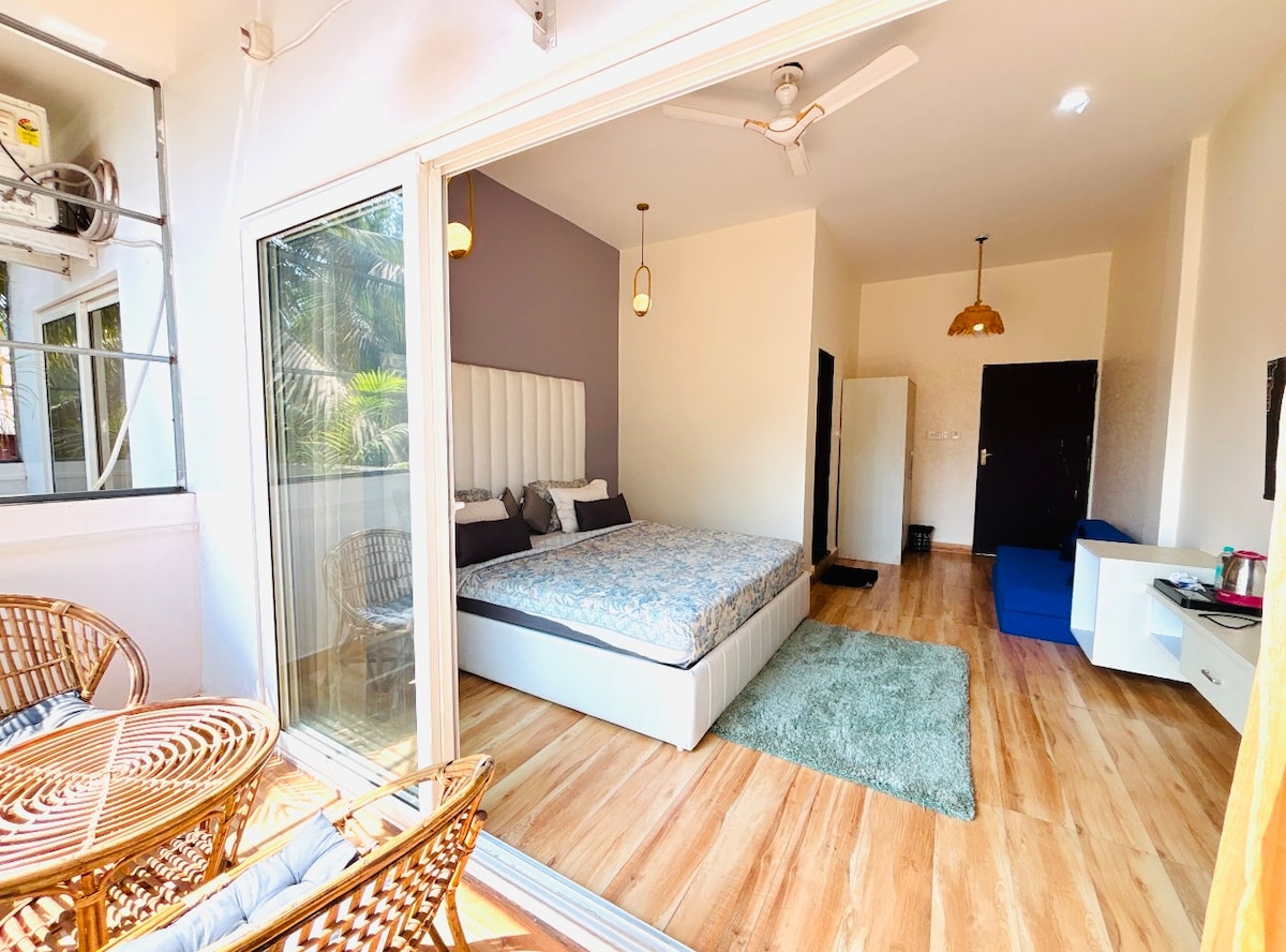 Your perfect beachside escape in Vagator awaits! 270 ft² / 25 m² private room 3 min walk to Vagator Beach ☞ Walk Score 99 (walk to Vagator Beach, fort, cafes, dining) ☞ Swimming pool ☞ Free car parking ★" Excellent location — close to beach & restaurants" ☞ Dimmable lights ☞ High-speed WiFi ☞ On-site caretaker ★ “Clean, cozy, and the location is perfect—will definitely return!”