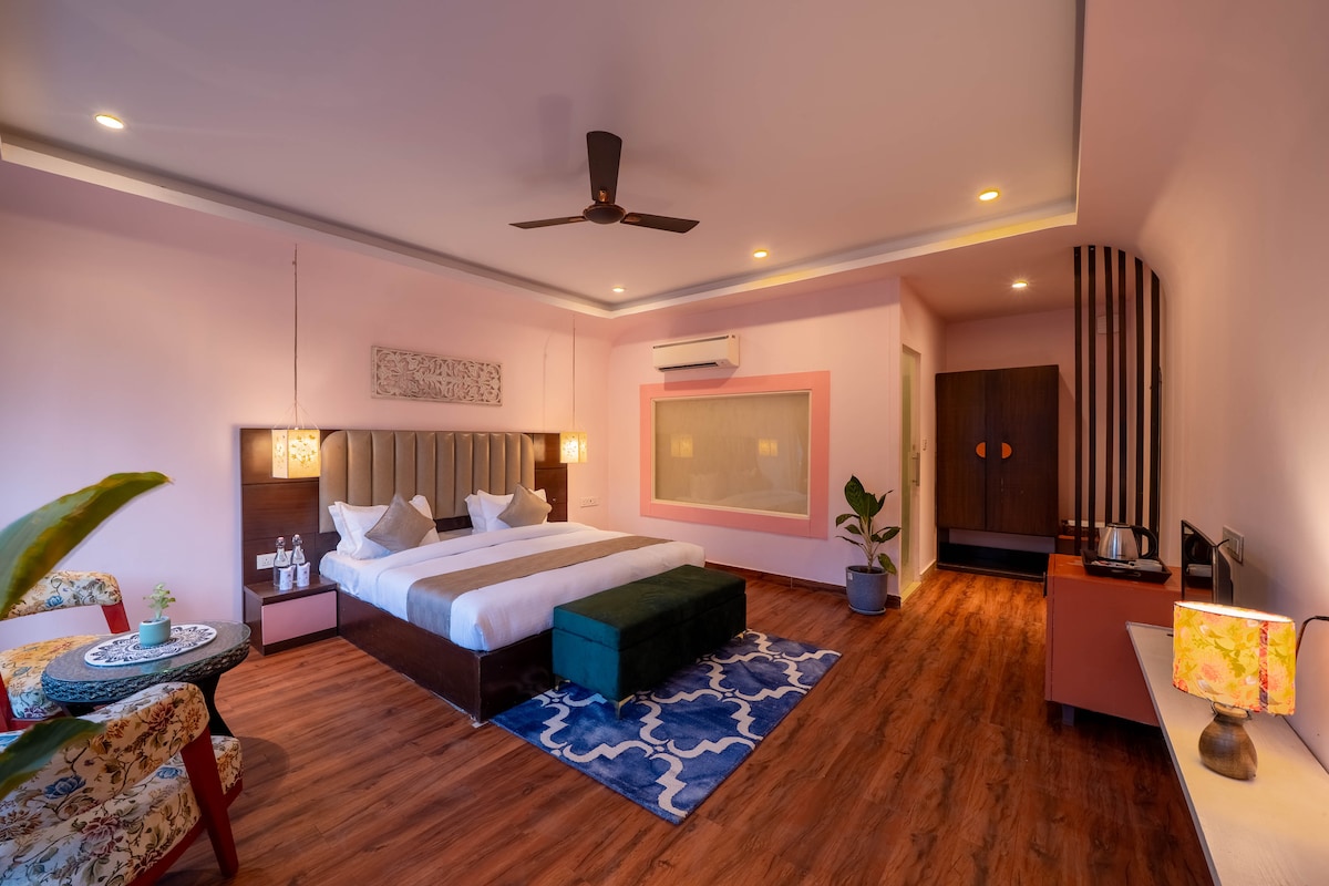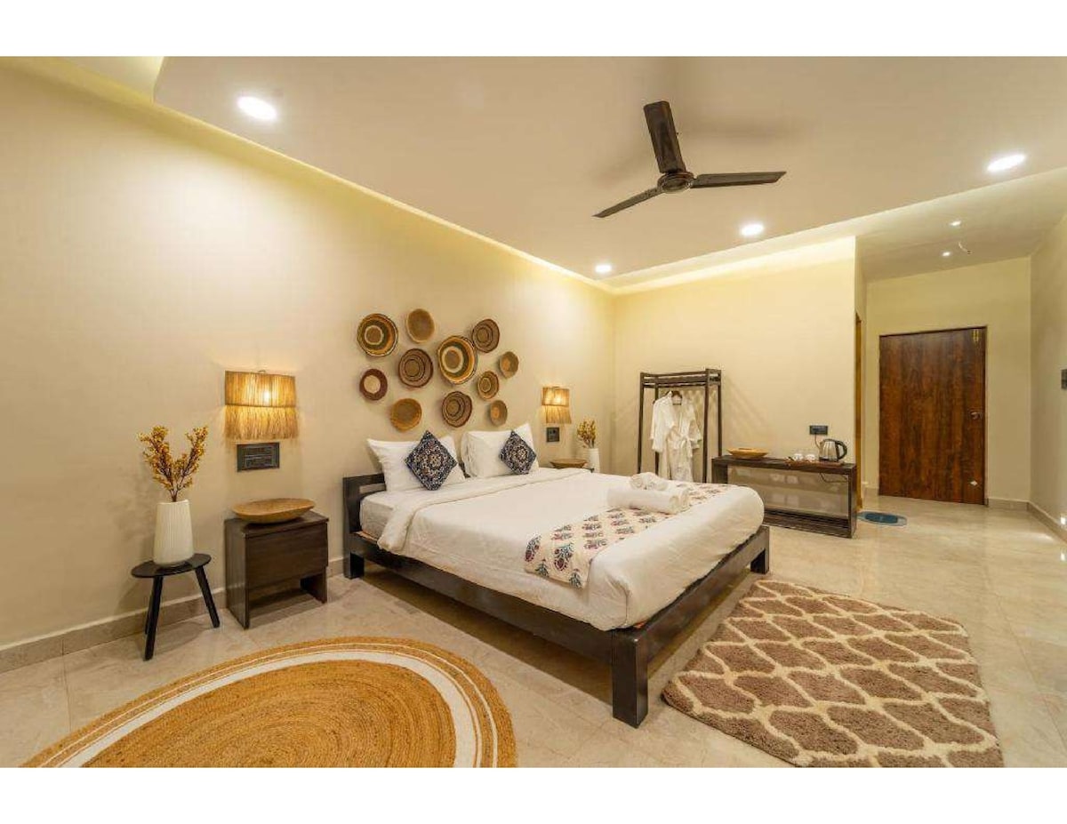 Warm, spacious & classy fully-furnished luxury ultra-spacious room in the very heart of Morjim! Bed room is large & have private attached bathrooms & you have ample space in the room for chillingout. The famous Morjim Beach gets you fantastic view of beach which is walkable from hotel.