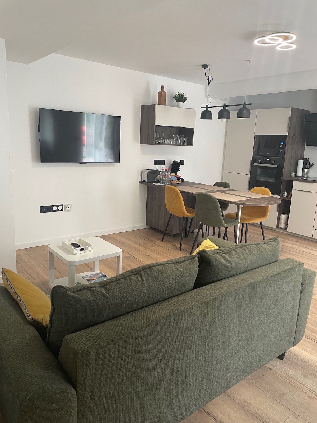 Détendez-vous dans ce logement calme et élégant. Appartement de 66,50 m2 très lumineux au premier étage pour 4 personnes. Au centre de Vittel, à proximité immédiate des commerces, restaurants, à 500m du parc thermal et des thermes. Appartement refait à neuf, constitué d'un séjour avec cuisine ouverte, 2 chambres, l'une avec 2 lits de 90 et 1 chambre avec un lit de 160, d'une buanderie, d'une salle de bain. Nous avons hâte de vous accueillir et de vous entendre dire "nous sommes comme CHEZ NOUS!"