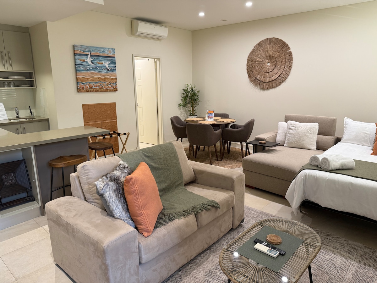 Welcome to "Forum and Foreshore" Tucked perfectly between the Forum Shopping precinct and the vibrant dining waterfront, this cosy space offers the ultimate in comfort, convenience and calm. Ideal for couples, solo Travellers, professionals and family's looking for a peaceful getaway, you'll enjoy ~A comfy study desk for remote work ~Dedicated parking bay ~Reliable WIFI, aircon and heating ~Fridge, fully equipped kitchen ~Complimentary bathroom essentials This is a place to unwind and relax