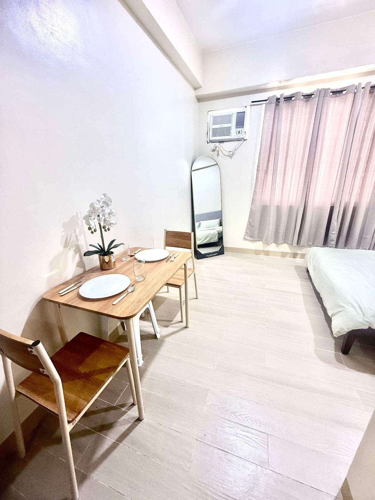 📢 PLEASE READ BEFORE BOOKING "Home Away from Home" – Studio Unit This cozy studio features 1 full/double size bed 🛏️, perfect for 2 people, plus an additional full/double size floor mattress (about 1 inch thick) 🛋️ that can comfortably accommodate 2 more guests. The extra mattress will only be set up if your party exceeds 2 guests. It’s your perfect urban sanctuary 🏙️, right in the heart of the vibrant Megaworld Complex! 🌟