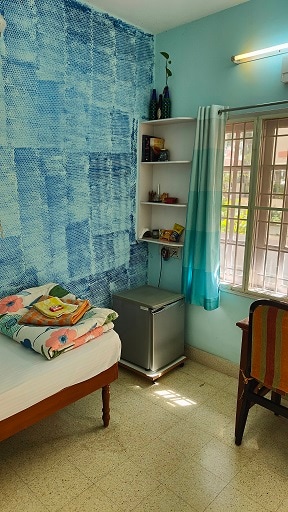 2BHK on ground flr of a 3 flrs building with all necessary amenities & functional kitchen.Owners are experienced hosts and have done up the place with an eye for detail. It is in close proximity to Manyata Tech Park, Palace Grounds, Orion Mall & Hebbal. The well ventilated house welcomes you with positive vibes and has an immediate calming effect. Great for short/long term stays for couples, families, students & professionals. Yum, home cooked meals at extras. Discounts for long term stays only.