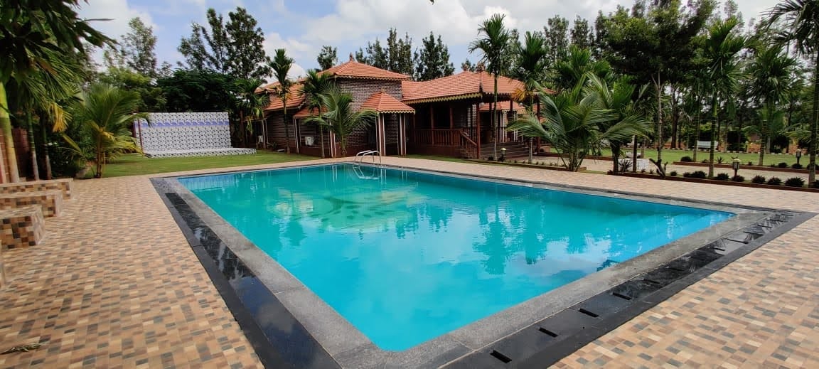 It is a country style luxury farm house with private pool and a fireplace amidst a lush green fruit orchard. Stay with us and experience the life within nature by rejuvenating and recharging in style. It can be either for workation or staycation. All meals included in the price. It is 1hr away from central Bengaluru - come and experience this one of a kind unique farm stay with friends and family.