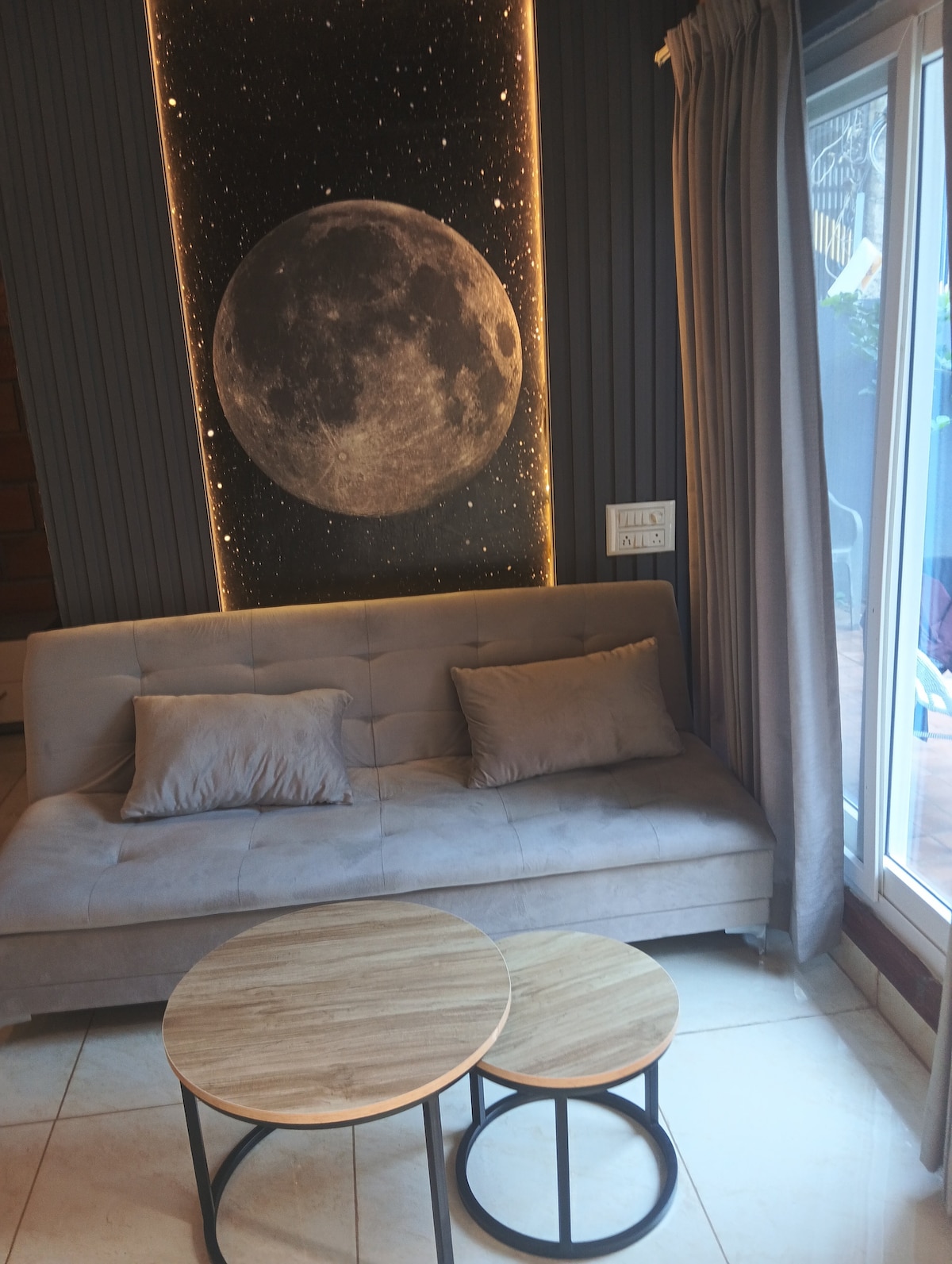 Cozy Garden Villa in Kanshiram Nagar, Bangalore Unwind in this charming villa with exposed brick walls, lush greenery, and a peaceful garden patio. Located in the quiet Kanshiram Nagar area, the home features airy interiors, cozy seating, and a private lawn — perfect for relaxing or working in style. Ideal for couples, solo travelers, or small families looking for a serene stay in Bangalore.