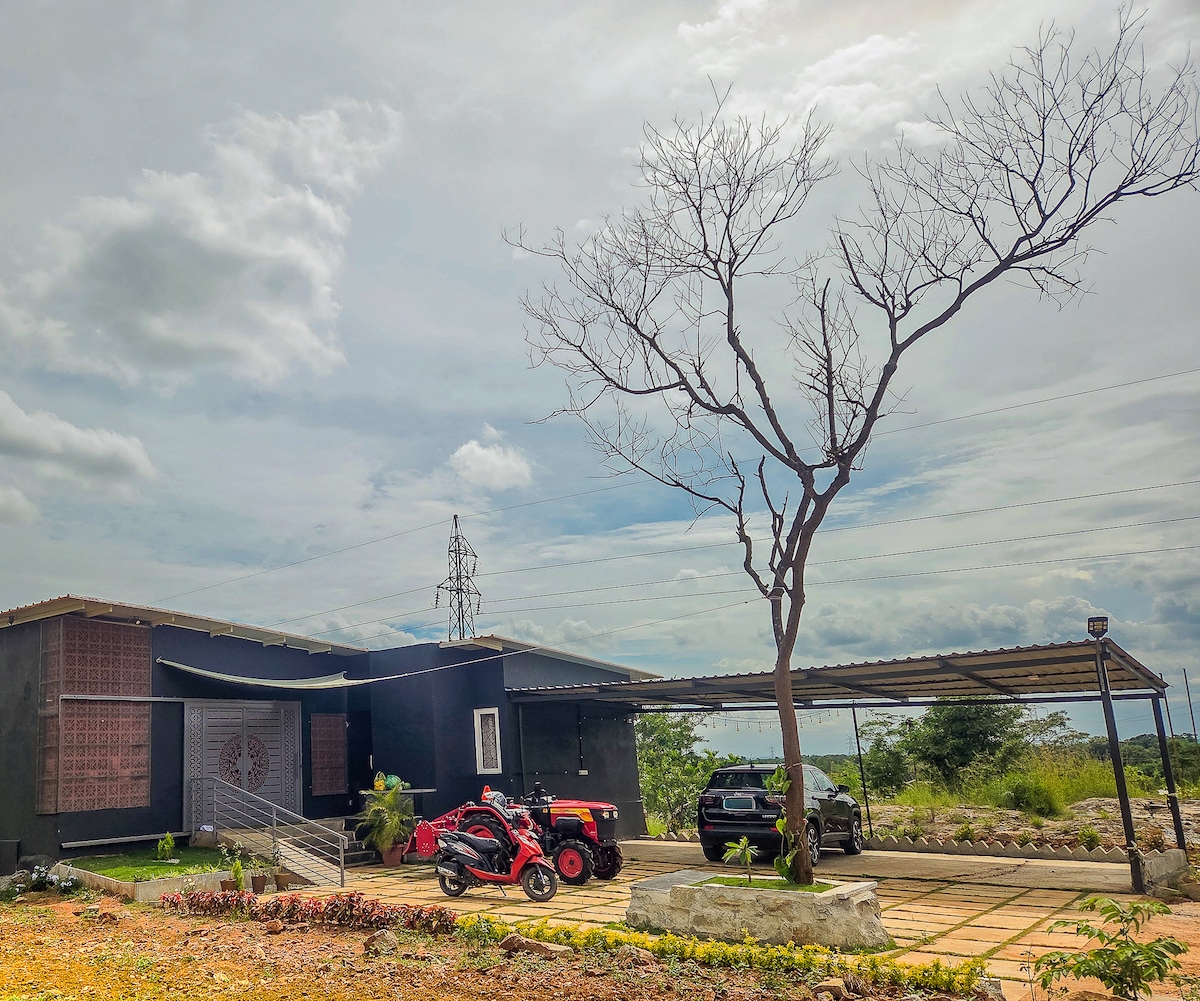 A pristine One bedroom farm house in the midst of the farm lands . Enjoy the sounds of nature and rejuvenate your mind and body. Pretend you are lost in a magical forest as you perch on a log or curl up in the swinging chair.
