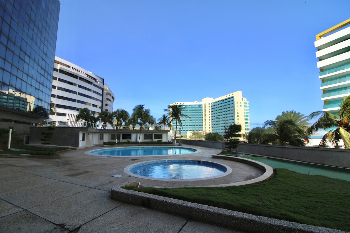 Ubicado en la bahía de Pampatar, acceso directo a una excelente playa, cálida y de suave oleaje. Piscina temperada panorámica. Servicio de toldos y sillas. Restaurante en área de piscina y público en área de playa, ambos con ricos cócteles y delicias del mar. Cerca de los mejores centros comerciales (Sambil, Costa azul, La vela) y de Pampatar donde están los mejores restaurantes de la Isla. La vista al mar desde su Terraza es un sedante natural. Vigilancia 24 h. Estacionamiento techado .