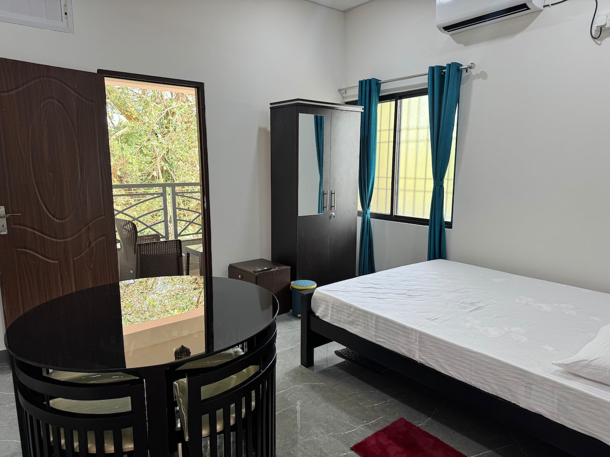 Welcome to this cozy little hideaway - a compact, comfortable room with a plush bed, an attached modern bathroom, and a breezy balcony perfect for morning coffee or a quiet unwind. The space also includes a small dining setup for relaxed meals. Thoughtfully put together for a peaceful stay, it's ideal for solo travellers or a small family of two. Simple, neat, and the perfect spot to rest and recharge.