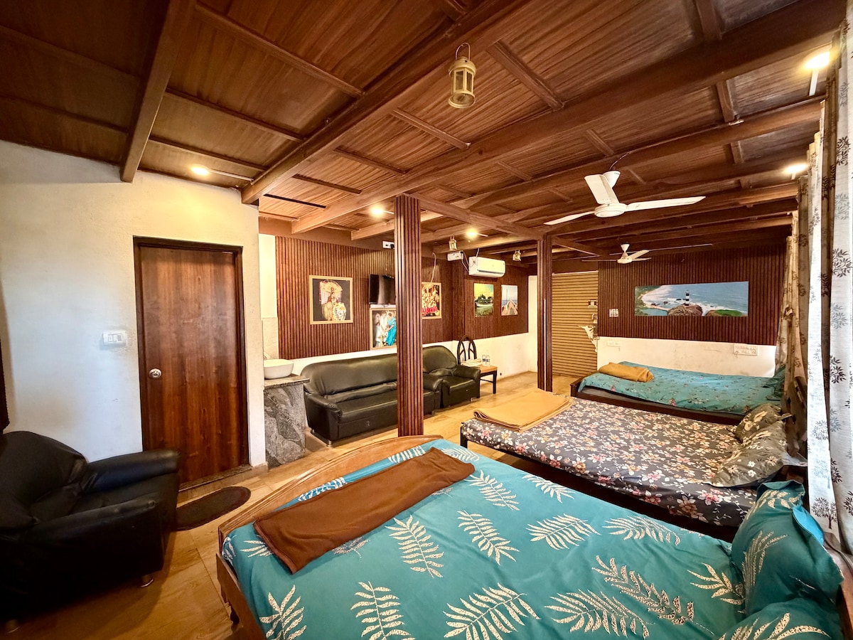 Stay in our Family 3-Bed AC Room in Kaup Resort within a peaceful resort setting. Since it’s part of a resort, other guests may be present in surrounding rooms and common areas. The room is well-equipped with AC, attached bathroom and Sports Activites , plus you’ll enjoy full access to the resort swimming pool and outdoor spaces — great for family trips and weekend getaways